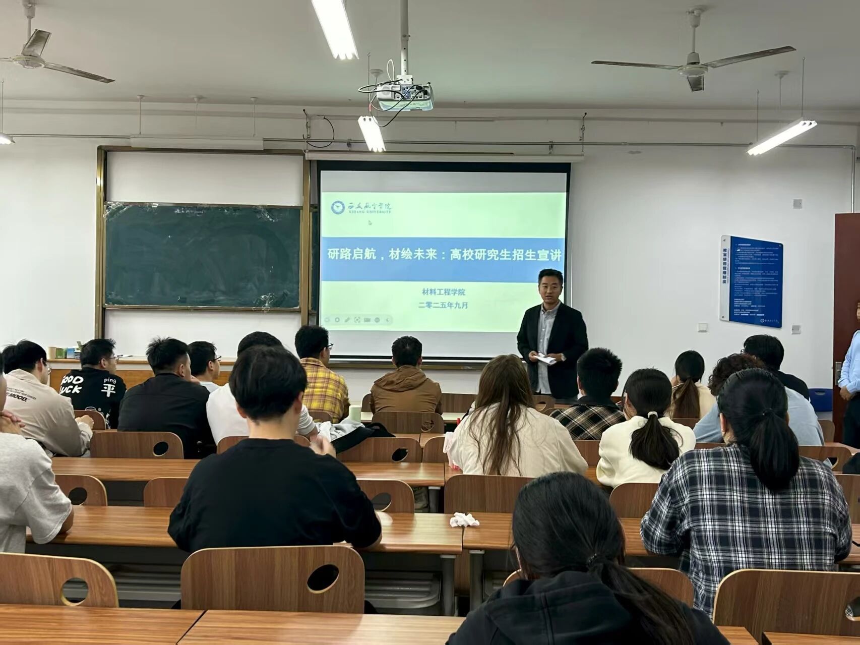 为帮助26届学生明确考研目标、掌握备考策略。9月18日,伟德官网特邀陕西理工大学、西安建筑科技大学、西安理工大学三所高校的招生负责人与优秀导师代表,共同举办“研路启航,材绘未来——高校研究生招生宣传进材料学院活动。全院有考研意向的学生到场参与,现场氛围热烈。