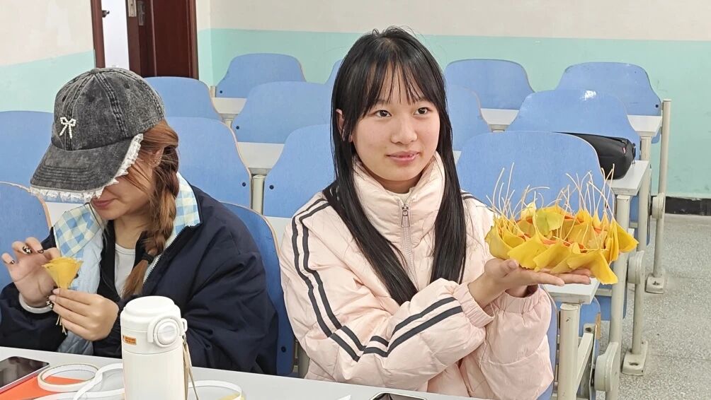 此次秋叶制作活动,不仅让同学们走出宿舍、亲近自然,在忙碌的学业之余感受了秋日的独特韵味,更锻炼了大家的动手实践能力与创新思维。通过团队协作与创意表达,同学们在创作中释放压力、收获成就感,同时也加深了对环保理念的理解——看似凋零的落叶,经巧思加工便能成为兼具美感与意义的艺术品。